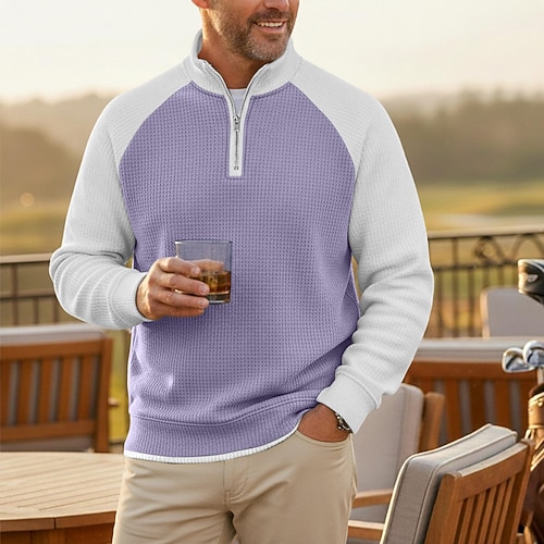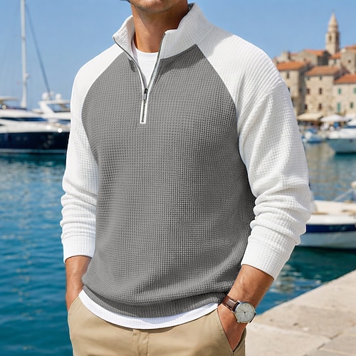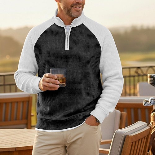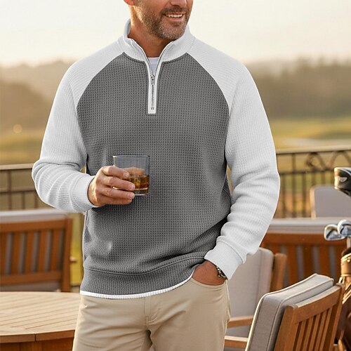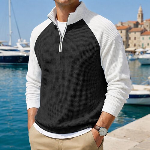 Per uomo Maglietta Polo con zip Maglietta tattica Camicia a Maniche Lunghe Manica Lunga Zip a un quarto Colletto fasciato Primavera Autunno Blocco di colori Quotidiano Casual Stile da Strada Tasca
