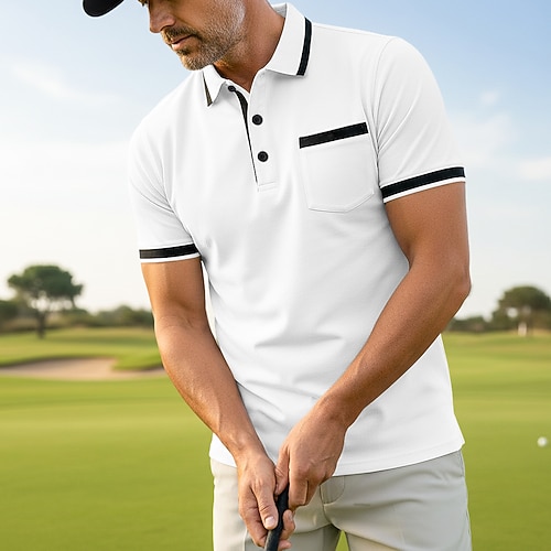 Per uomo Polo Maglia da golf All'aperto Abbigliamento quotidiano Colletto fasciato Manica Corta Moda Hawaiano A righe Tasca Estate Vestibilità regolare Nero Blu Azzurro cielo Verde Albicocca Polo