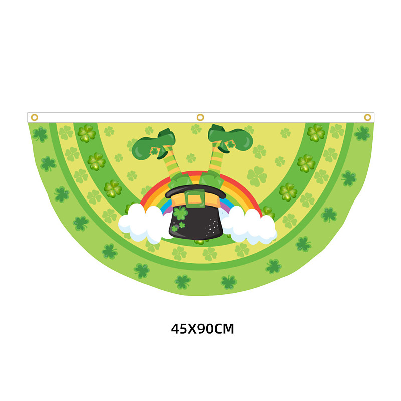 St Patrick's Day Flag, Irish Clover Green Leaf Design, Half-Round Fence Decoration, St. Patrick's Day Ireland Flag for Outdoor Festive Decor.