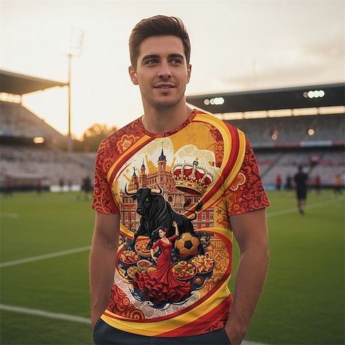 Weltfußball Sportbekleidung Grafisches T-Stück Vintage American Football Spanischer Fußballfan T-Shirt Ärmel für Herren Erwachsene 3D-Druck für Party Sport im Freien