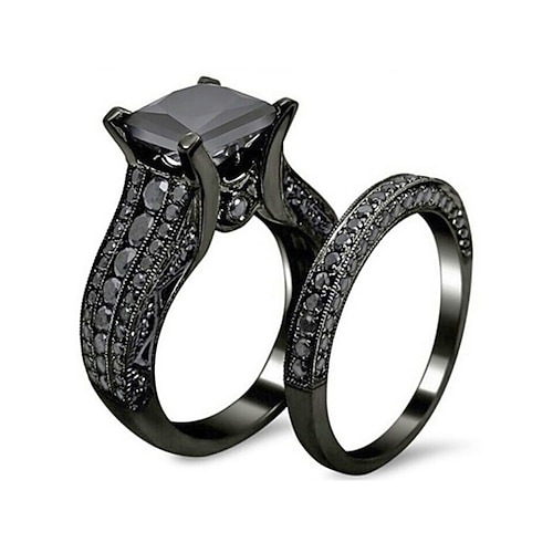 set di anelli da uomo con pietra nera, stile gotico vintage in lega con gemma a taglio quadrato, opzioni multicolore per fedi nuziali, fidanzamenti, feste e abbigliamento casual quotidiano