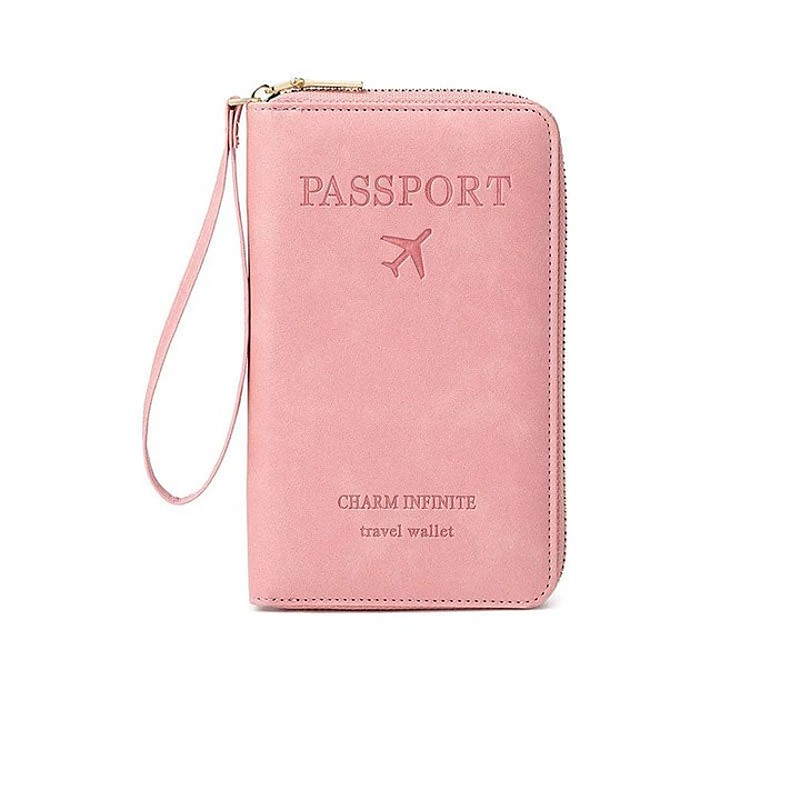Multi Functional RFID Passport Wallet Leather Women Long Travel Document Holder Large Capacity Simple Stylish Multi Purpose Card Organizer Clutch Purse For Daily Use