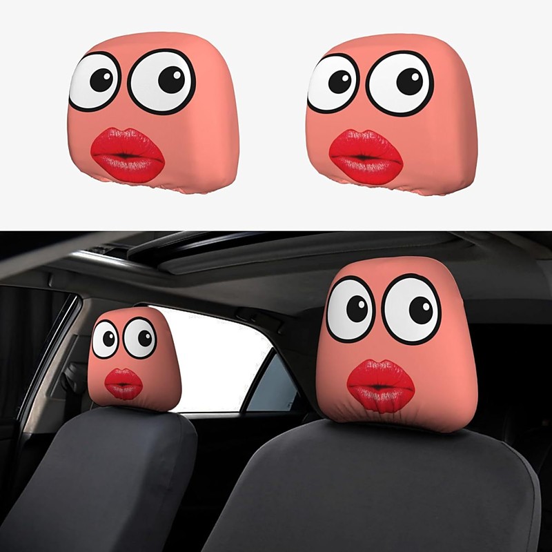 2pcs Funny Lips Print Car Headrest Covers, Neck Pillow and Lumbar Support Cushion, Soft and Fluffy, All-Season Use, Suitable for Long Distance Driving, Daily Commuting, Business Travel, In-Car Rest