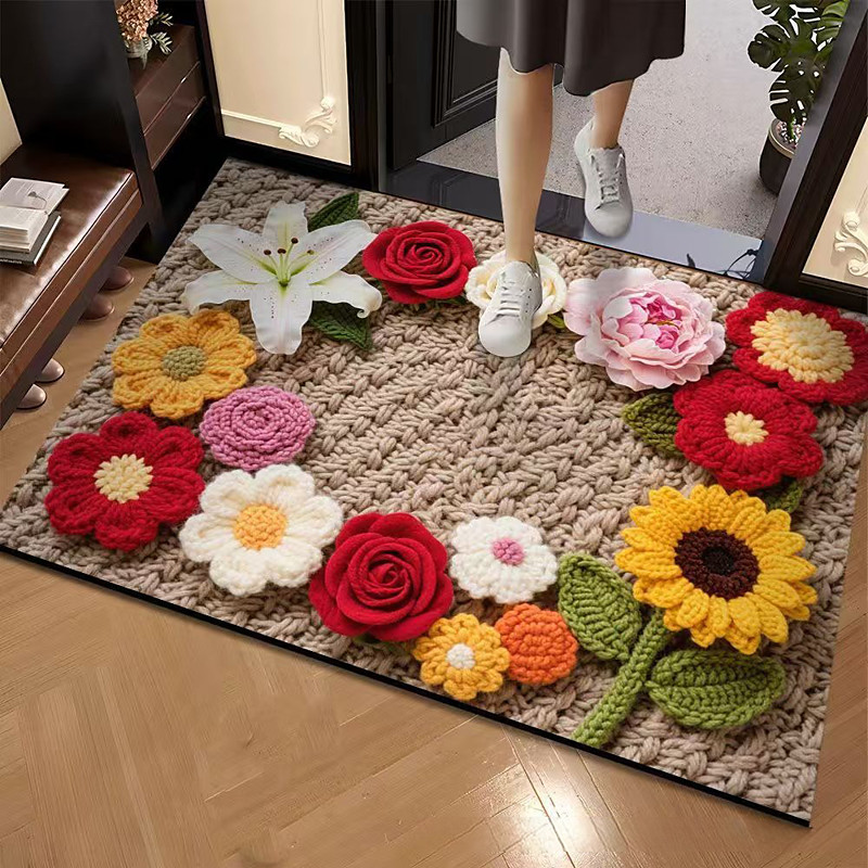 Doormat Diatomaceous Earth Mat Non-Slip Bathroom Floor Mat Water Flower Design Easy Care Entrance Kitchen Rug Absorbent Quick-Drying for Home Use