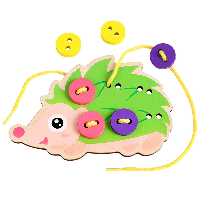 Wooden Hedgehog Lacing Toy - Fine Motor Skills Threading Game for Toddlers - Montessori Educational Toy Christmas Gift