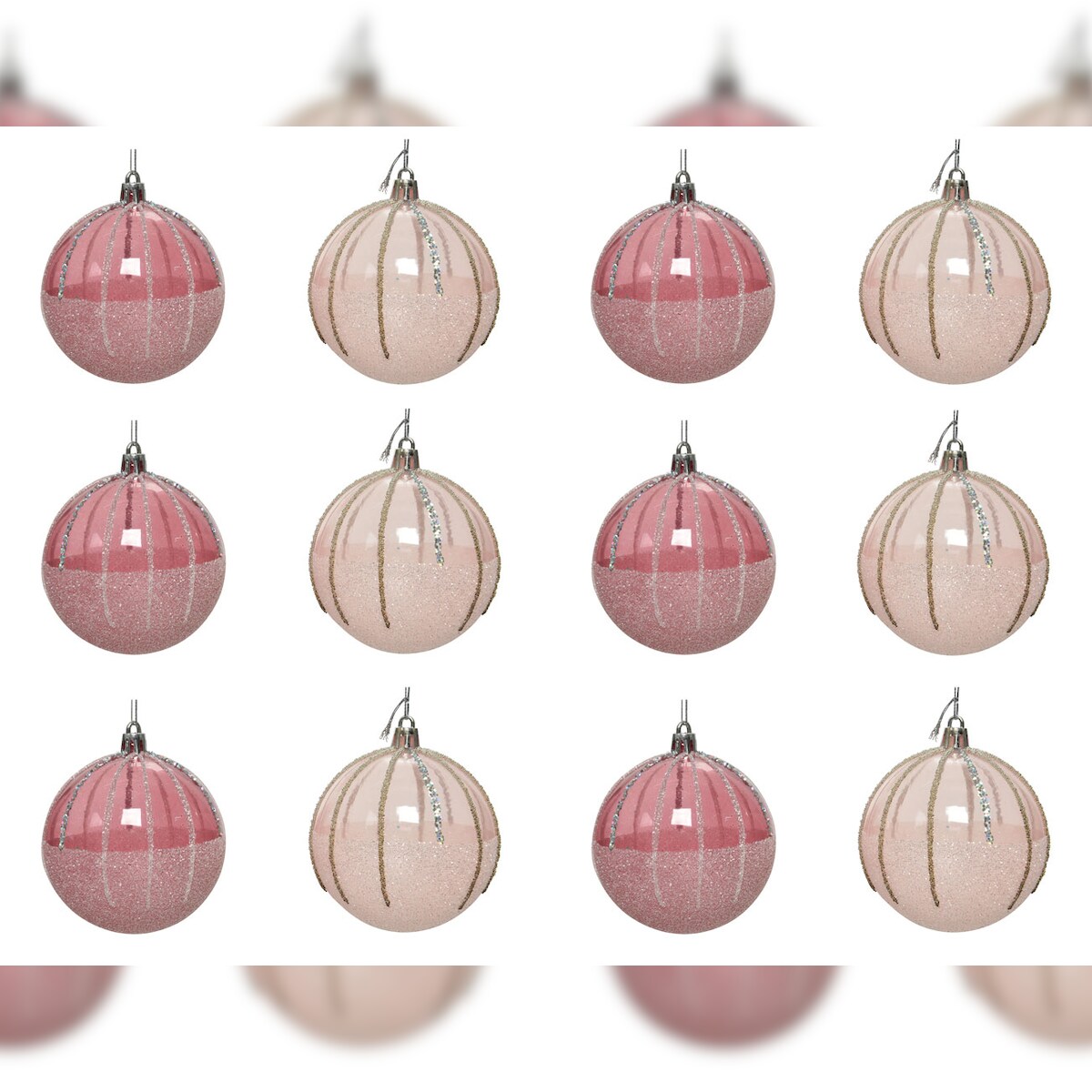 12 Weihnachtskugeln 8cm Muster Glitzer Motiv Christbaumschmuck transparent rosa
