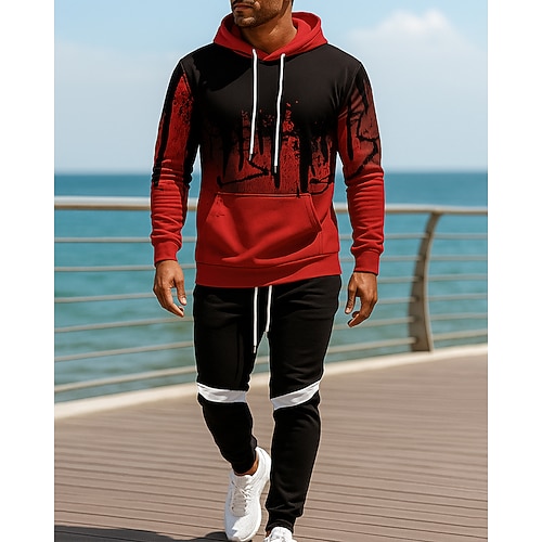 Per uomo Tuta da 2 pezzi Felpa con cappuccio Lounge Set di tute da ginnastica Coulisse Gradiente di Colore Completo Abbigliamento Autunno Bianco Rosso All'aperto Viaggio Sportivo Traspirante Manica