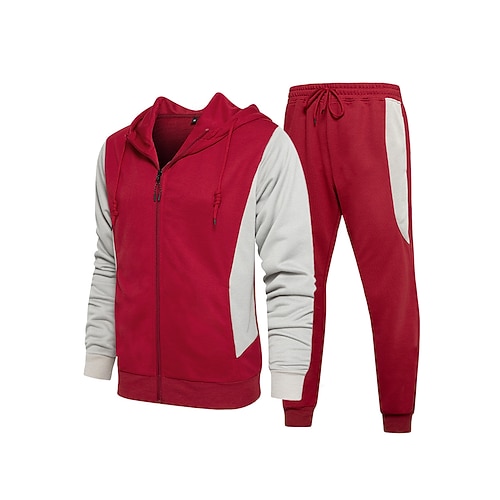 Per uomo Tuta da Ginnastica Set di abiti Set di felpe con cappuccio Felpa con Cappuccio All'aperto Quotidiano Sportivo Coulisse Con zip Tasca Blocco di colori Rosso bordeaux Nero Bianco Abbigliamento