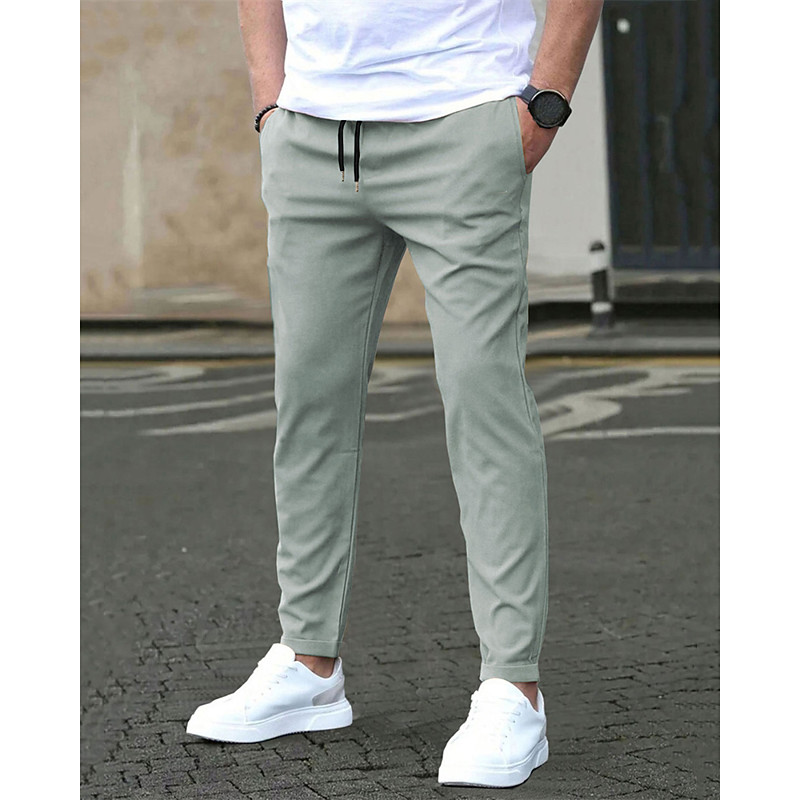 Men's Trousers Chinos Pocket Elastic Waist Drawstring Plain Comfort Formal Party Work Fashion Classic Style Black Light Green Micro-elastic