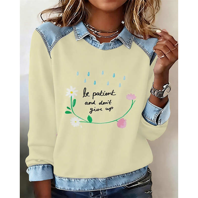 Women's Pullover Sweatshirt Floral Graphic Plain Elegant Warm Classic Long Sleeve Lapel Regular Tops Casual Home Work Patchwork Print Blue Light Yellow Grass Green White Light Green Fall Winter