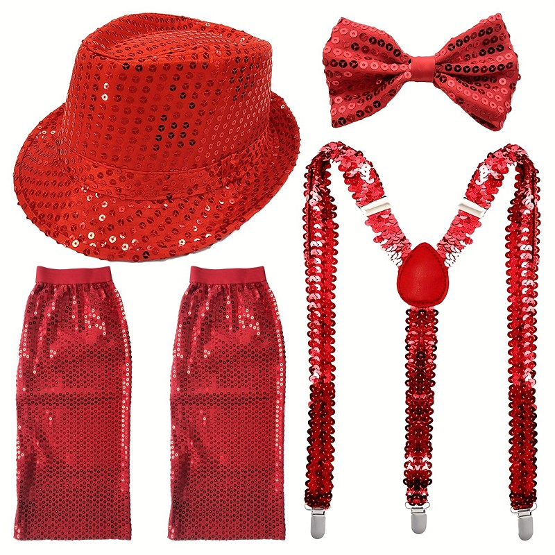 Carnival Costume Disco Carnival Fancy Costume Panama Hat Y-Back Suspenders Retro Vintage 1980s Sequins Adults' Men's Women's Unisex Halloween Carnival Party Performance Dance Ballet Easy Carnival