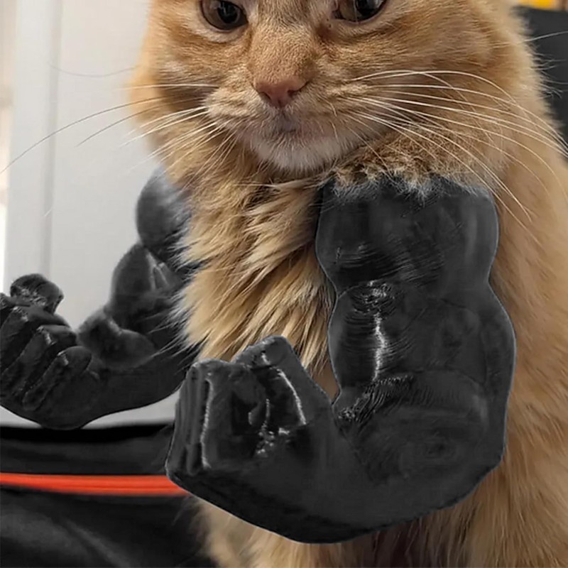 3D Printed Cat's Neck Arms with Muscle Funny Cat Muscle Arms Halloween Cat Costume Funny Kitten Superhero Pet Cosplay Accessories Birthday Party Supplies