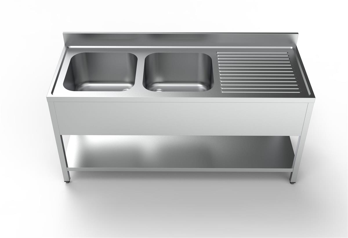 Edelstahl Spültisch PRO mit Grundboden 180 x 70 cm - 2 Becken links