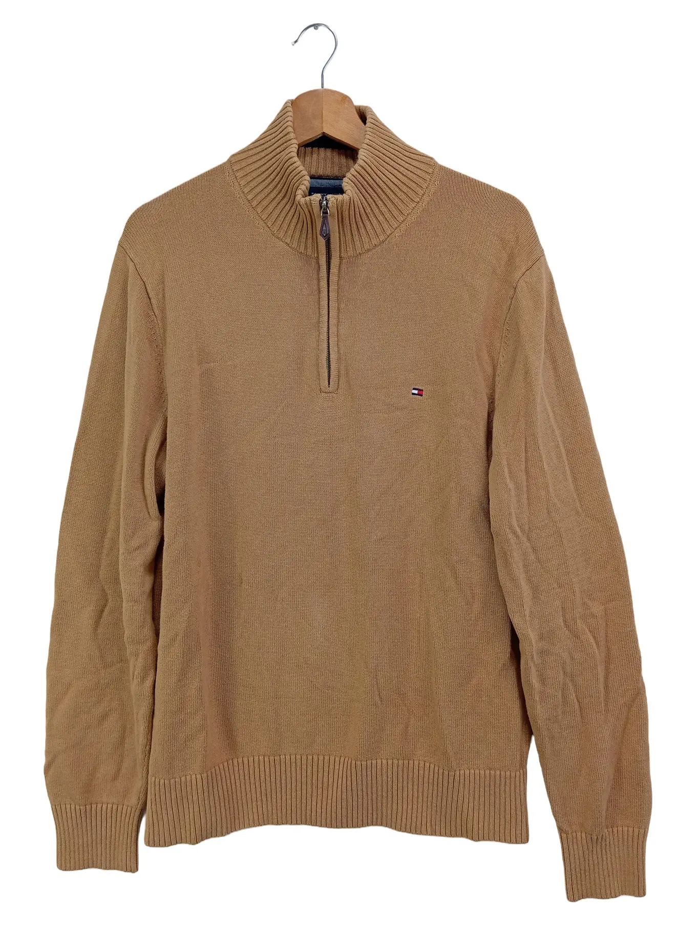 TOMMY HILFIGER Pullover M Beige Baumwolle Kragen
