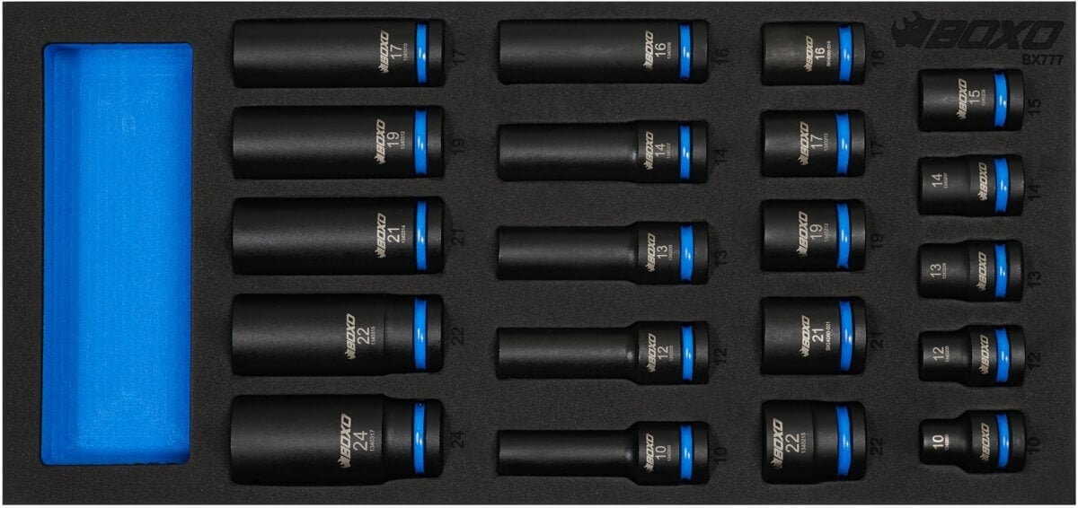 Konehylsysarja 1/2" 10-24 mm lyhyet ja pitkät, Boxo
