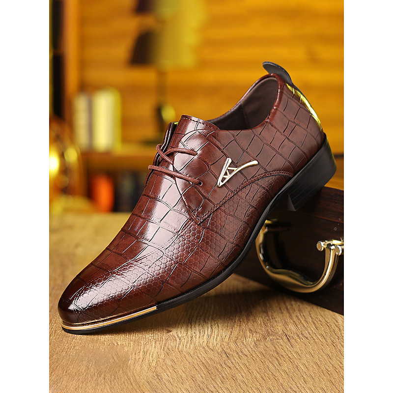 Men's Brown Crocodile-Embossed Faux Leather Oxfords – Premium Design for Weddings, Business Events and Formal Occasions
