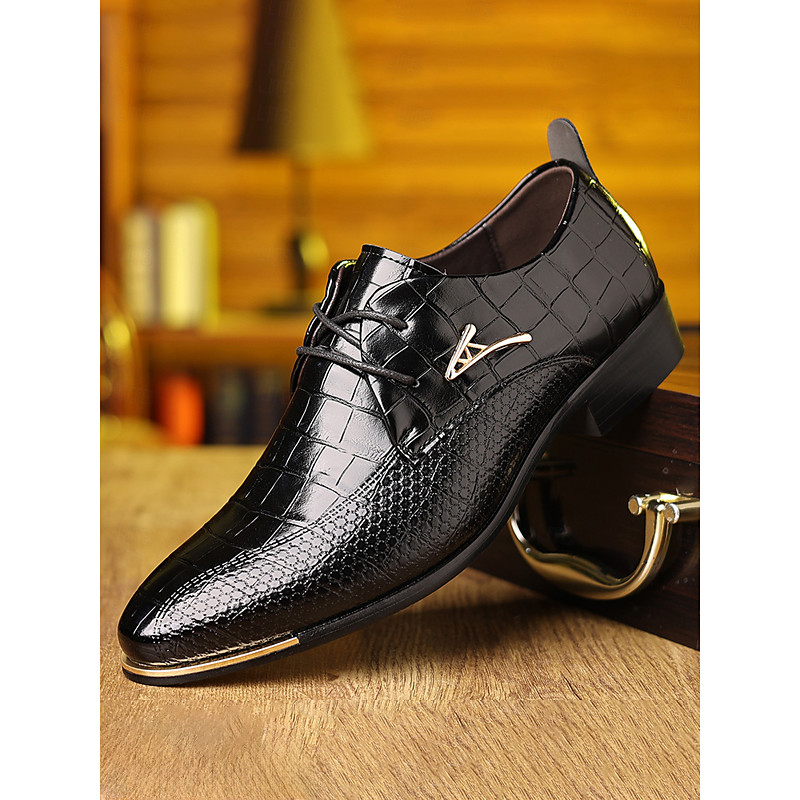 Men's Patent Faux Leather Embossed Dress Shoes - Black Formal Business Lace-Up Oxford Shoes for Weddings, Parties, and Events