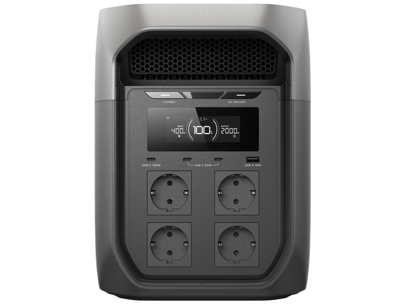 EcoFlow DELTA 3 Max, Lithium jern fosfat (LiFePO4), Vekselstrøm, Cigartænder, Solar, 2048 Wh, 2400 W, 220 - 240 V, 11 - 60 V