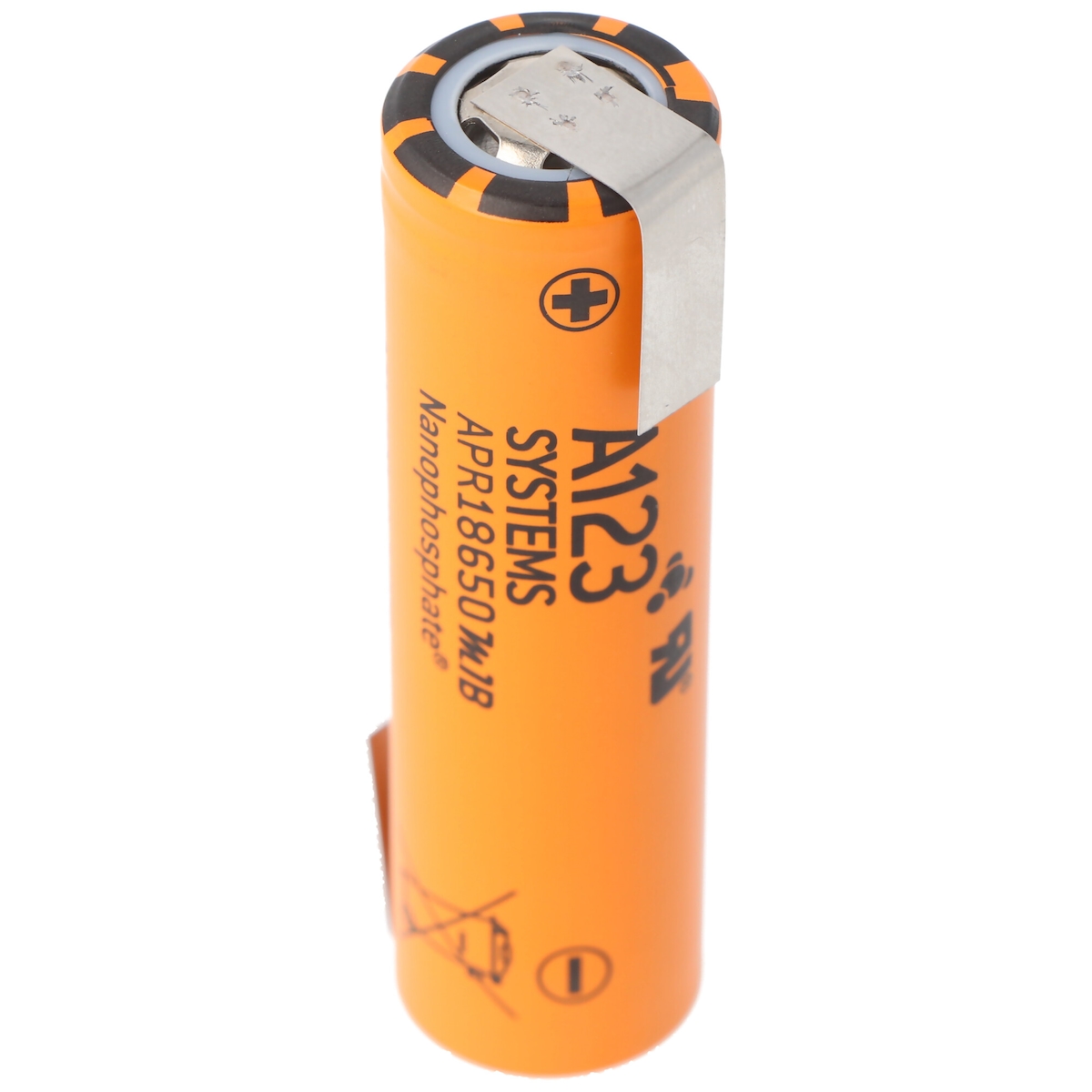 A123 Lithium Werks APR18650M1B 1100mAh 3,3V LiFePo4 Akku mit Lötfahne Z-Form 64,95x18,2mm