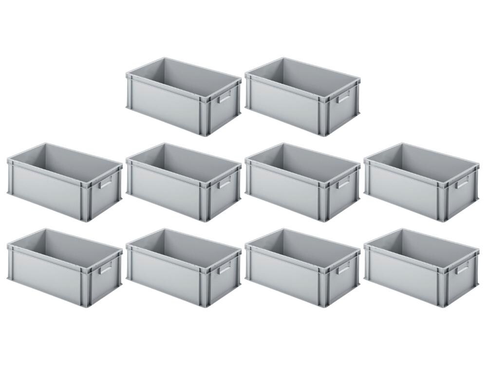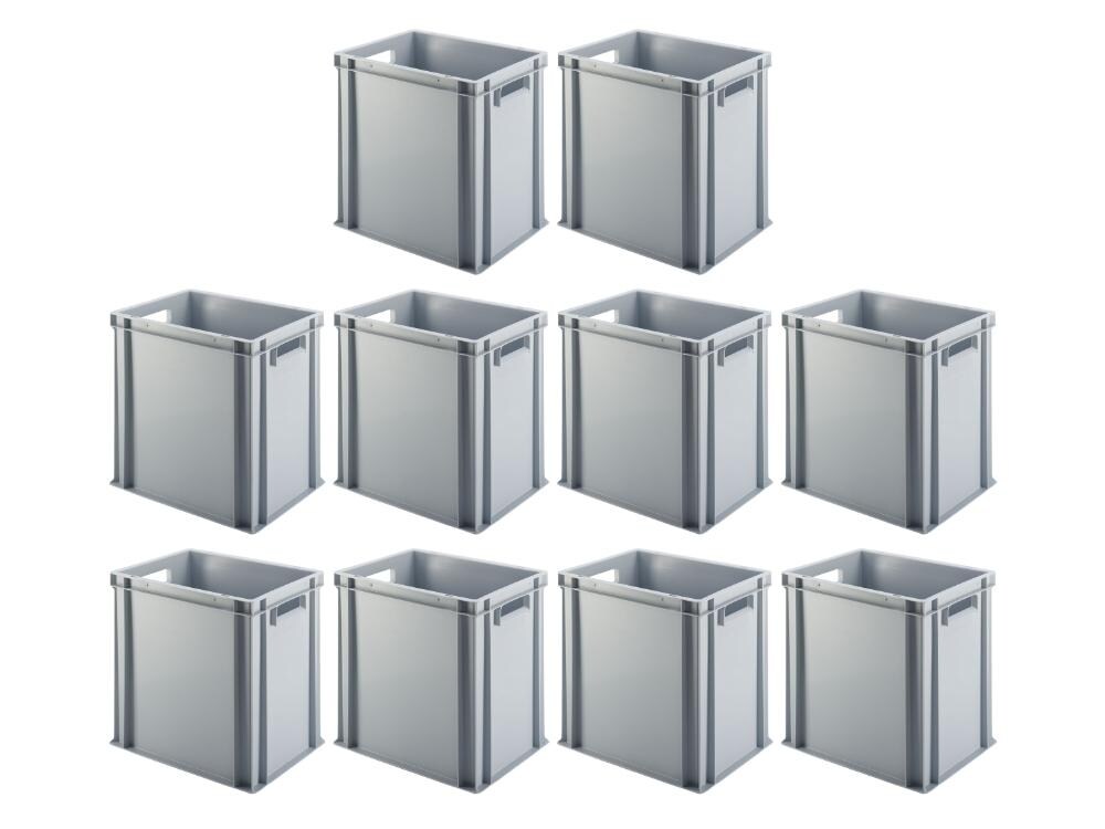 PROREGAL 10x Eurobehälter mit offenem Griff | HxBxT 40x30x40cm | 37 Liter | Grau | Eurobox, Transportbox, Transportbehälter, Stapelbehälter