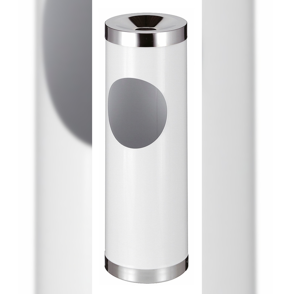 PROREGAL Runder Metall Kombiascher mit ovaler Einwurfsöffnung | 30 Liter, HxØ 72x24cm | Weiß