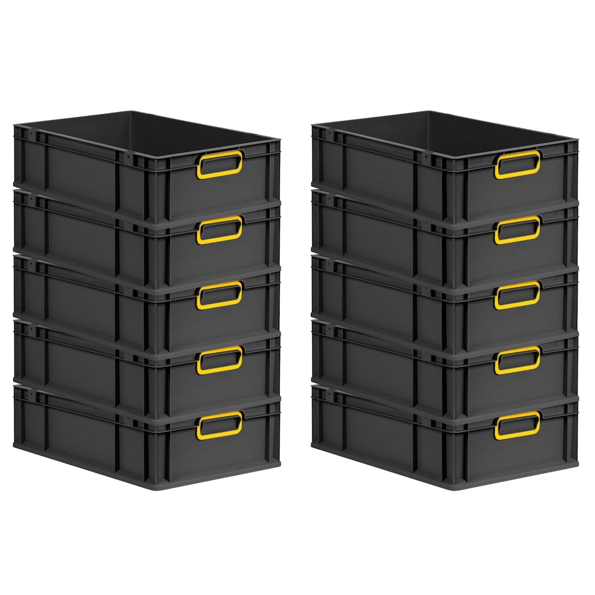 PROREGAL SparSet 10x Eurobox NextGen Color, HxBxT 17x40x60cm, 34 Liter, Griffe gelb zu, Schwarz, Eurobehälter, Transportbehälter