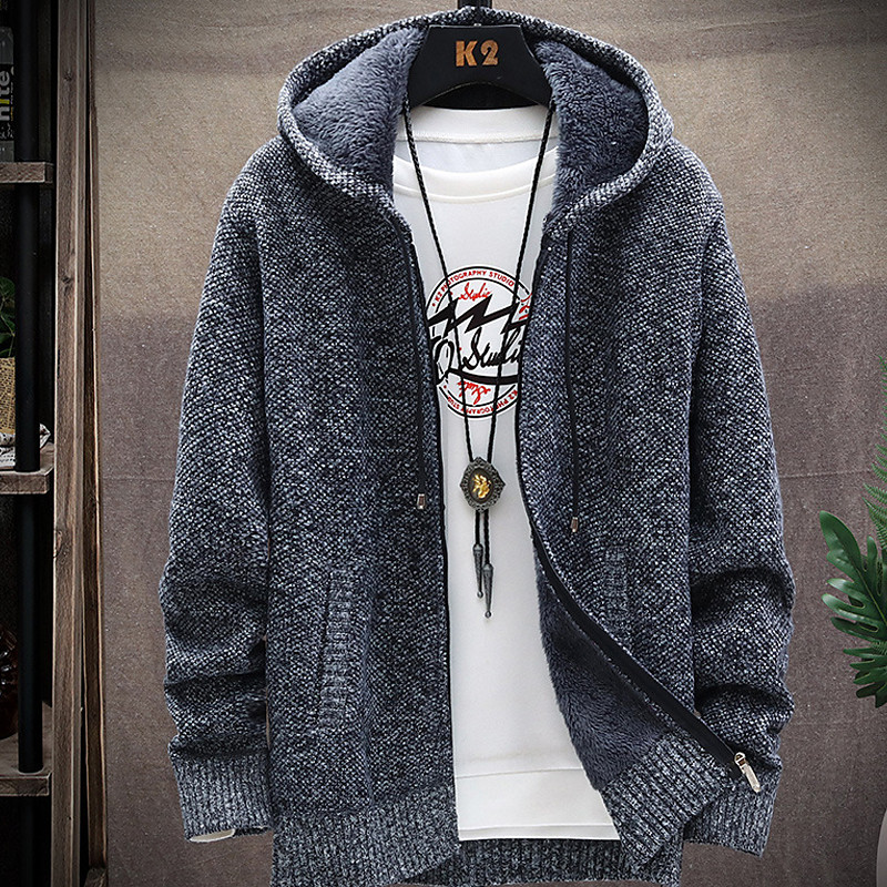 Men's Sweater Cardigan Knit Knitted Solid Color Hooded Stylish Outdoor Home Clothing Apparel Fall Winter Wine Blue S M L