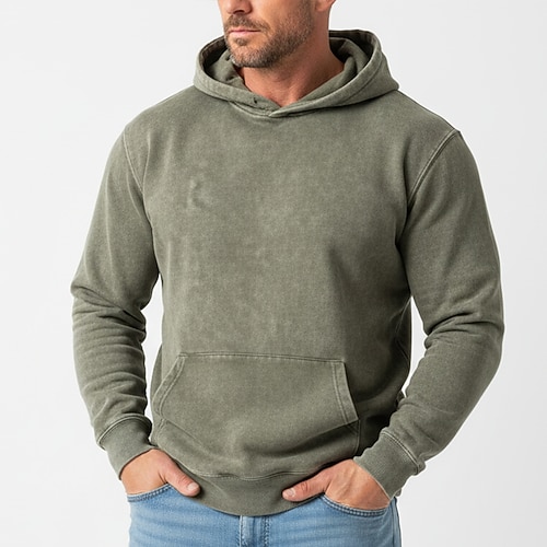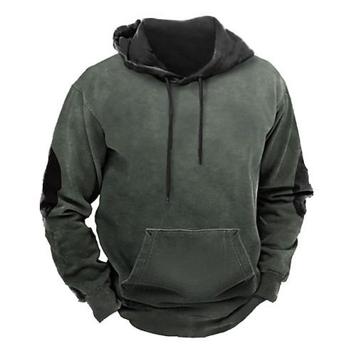 Per uomo Felpa con cappuccio Cachi Grigio Con Cappuccio Semplice Patchwork Blocco di colore Tasca a marsupio Sport Outdoor Casuale Quotidiano Vintage Streetwear Cool Primavera Autunno