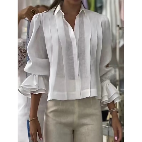 Per donna Top Eleganti Top fluidi Tinta unica Semplice Elegante Vintage Classico Manica Lunga Top lunghi Quotidiano Uscire Bottoni Bordo in pizzo Drappeggiato Nero Giallo Vino Blu Reale Cammello