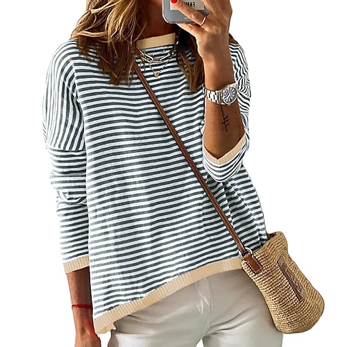Per donna Top casual Pullover Maglione Manica Lunga Top Athleisure A righe Morbido Caldo All'aperto Vacanze abbigliamento sportivo Abbigliamento sportivo Nero Rosso Blu