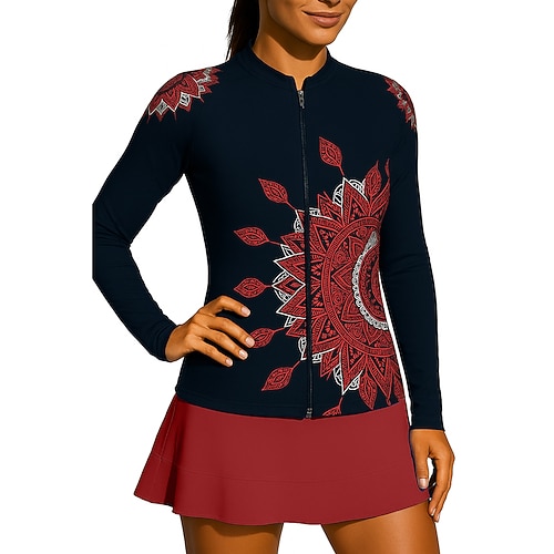 Per donna Boho Maglia da tennis Top sportivo Elegante Stampa Elastico Traspirante Tennis Pickleball Corsa Top Nero Abbigliamento da tennis