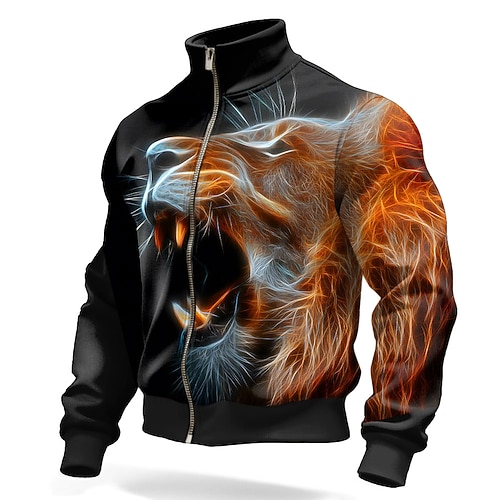 Per uomo Leone Fiamma Giacca di pelle Felpa Cool Quotidiano Fantasia Pantaloni Tattici Collo alla coreana All'aperto Abbigliamento casual alla moda Feste Nero 1 Nero 3 Nero 2 Con zip Primavera Autunno