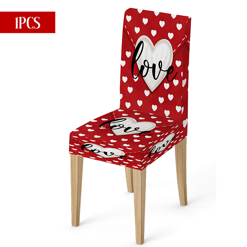 Valentine's Day Stretch Dining Chair Cover Black White Buffalo Check Heart Car Bowknot Chair Back Slipcover Washable Winter Home Restaurant Living Room Kitchen Decor 1/4/6 Pcs