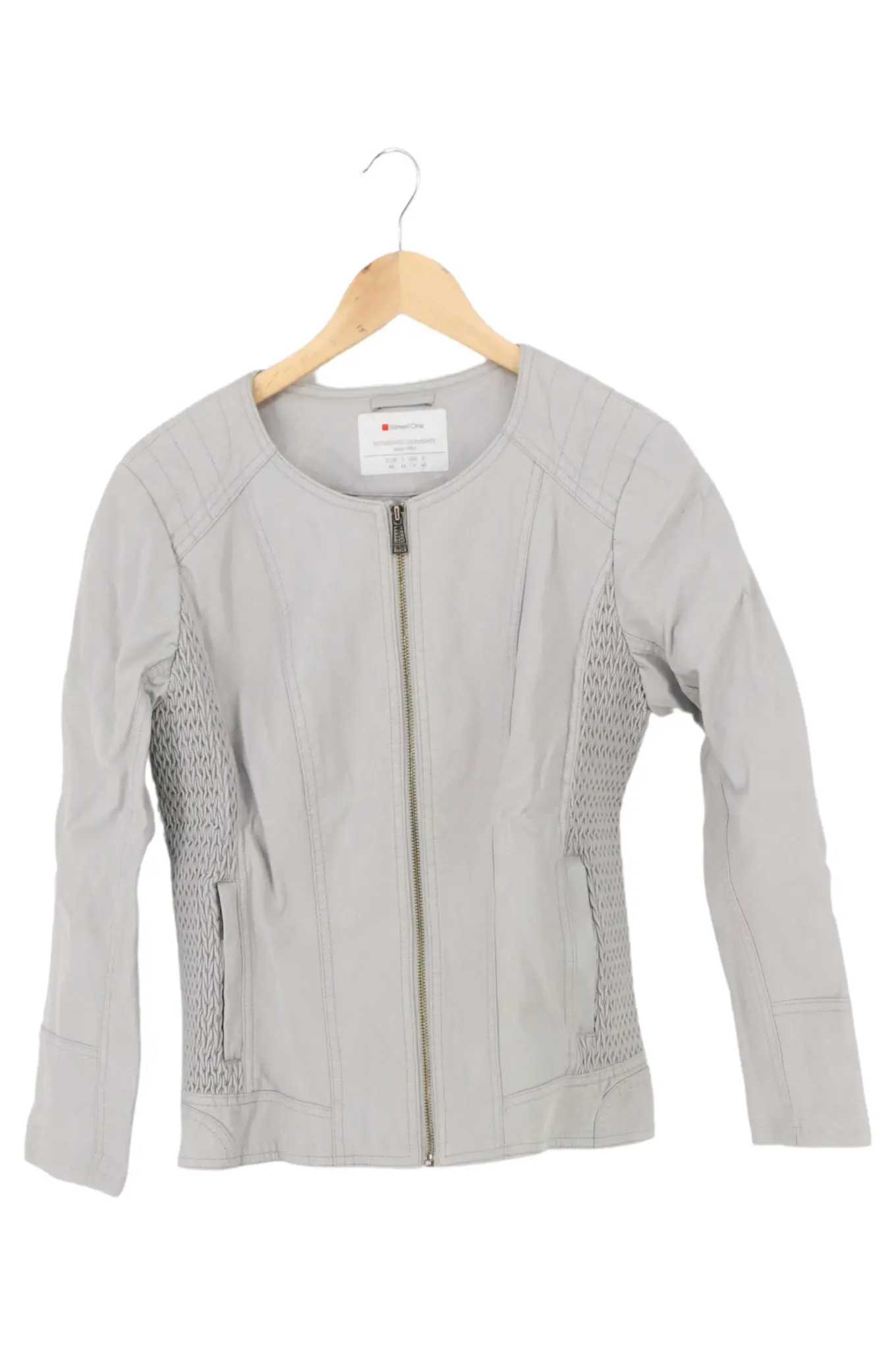 STREET ONE Lederjacke Damen Gr. 40 Grau Reißverschluss Casual