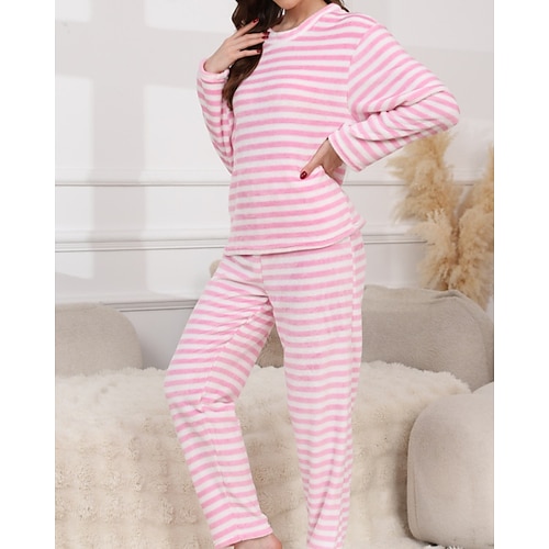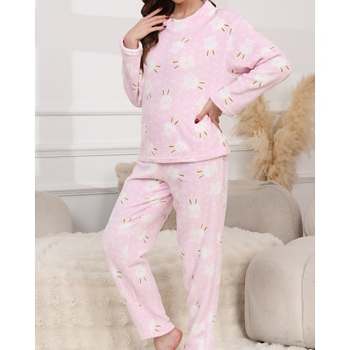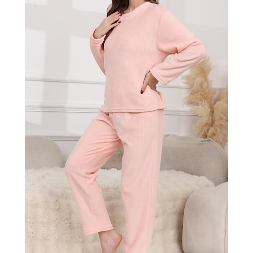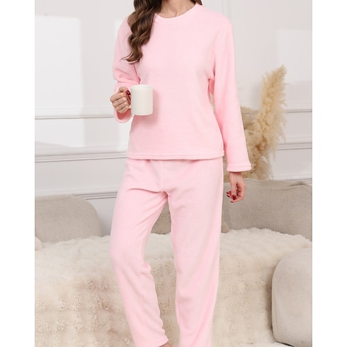 Per donna Abbigliamento da Casa Set Pigiama Casual Comfort Floreale Colore Puro Elastico in vita Pullover Pantalone Vacanza Casa Quotidiano Manica Lunga Girocollo Rosa chiaro polvere bianca Loto Rosa