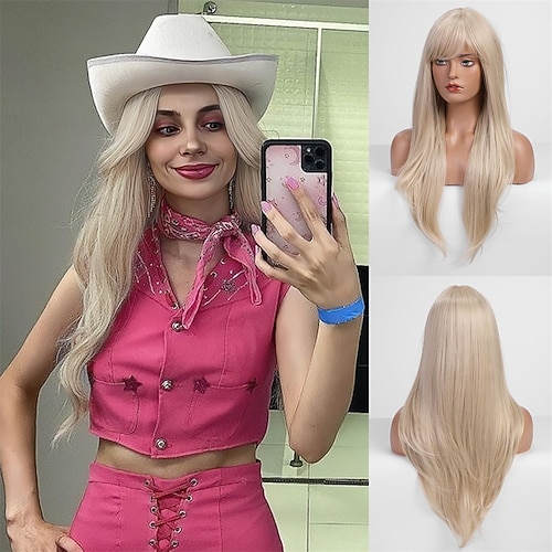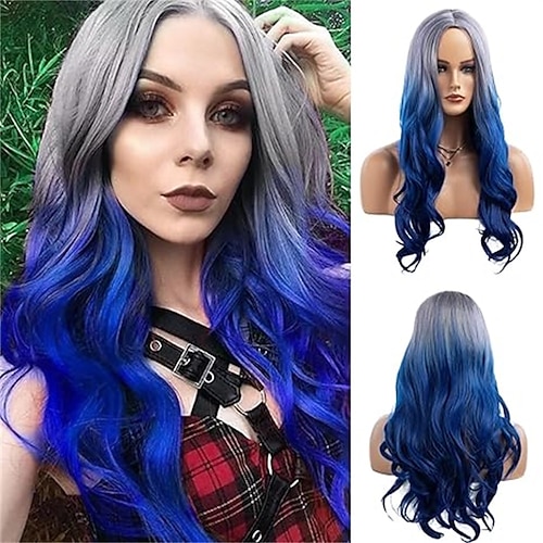 parrucca rosa per donna, parrucca sintetica ondulata lunga 26 pollici con riga centrale, parrucca di capelli resistenti al calore dall'aspetto naturale, per uso quotidiano, feste in cosplay Halloween