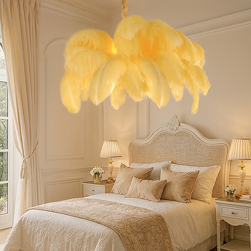 lampada a sospensione a led in piuma di struzzo camera da letto cavo regolabile 3000-6000k 50cm lampadario in piuma romantico decorativo appeso a soffitto apparecchio per camera da letto per ragazze