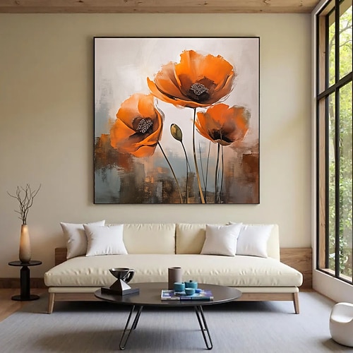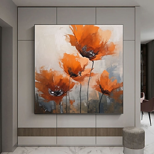 dipinto a olio retrò country fatto a mano, arte murale floreale su tela per soggiorno, arte murale arancione con fiori selvatici, immagini di fiori di piante naturali per bagno, camera da letto,
