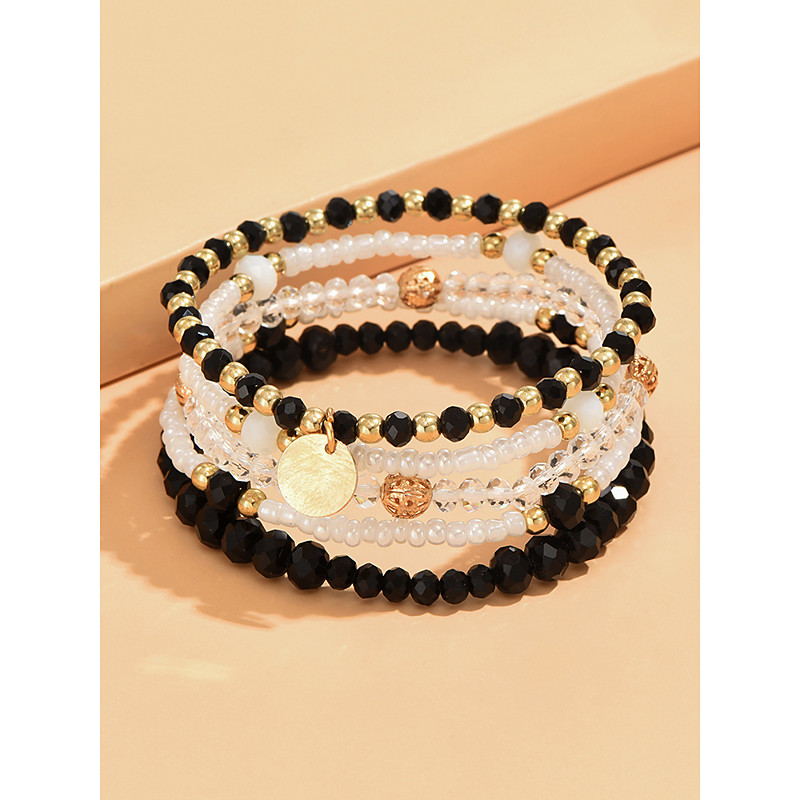 Women's 5-Piece Beaded Bracelet Set with Gold Accents and Charm Pendant, Boho Stackable Jewelry for Summer, Beach and Casual Outfits