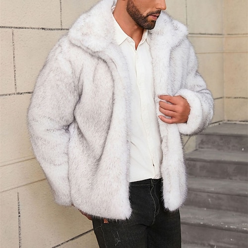 Per uomo Giacca Invernale Cappotto in Pelliccia Sintetica Vacanza Quotidiano Calore Termico Pile Autunno Inverno Semplice Moda Streetwear Bavero Regolare Pelliccia sintetica Bianco Marrone Grigio