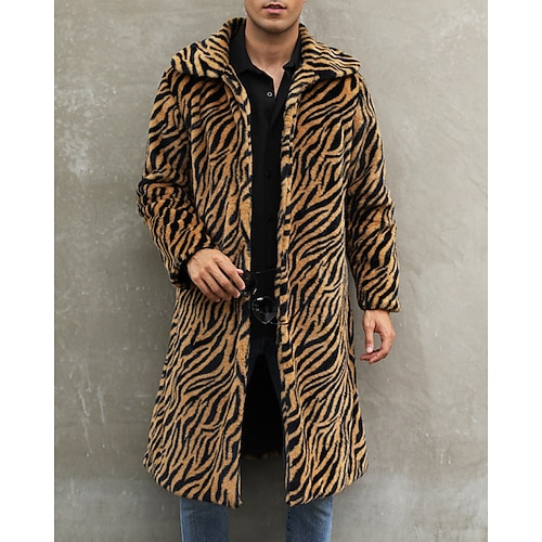 Per uomo Giacca Invernale Cappotto in Pelliccia Sintetica Vacanza Quotidiano Calore Termico Pile Autunno Inverno Leopardo Moda Streetwear Bavero Lungo Pelliccia sintetica Bianco Marrone Giacca