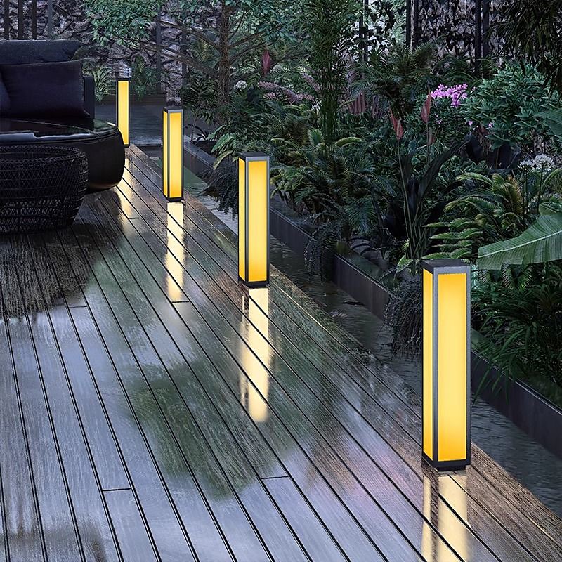 Outdoor Post Pathway Lights Landscape Pathway Light Black Square Yard Lighting Lamps Housing Waterproof Led Lawn Floor Lamps Bollard Lights for Pool Garden