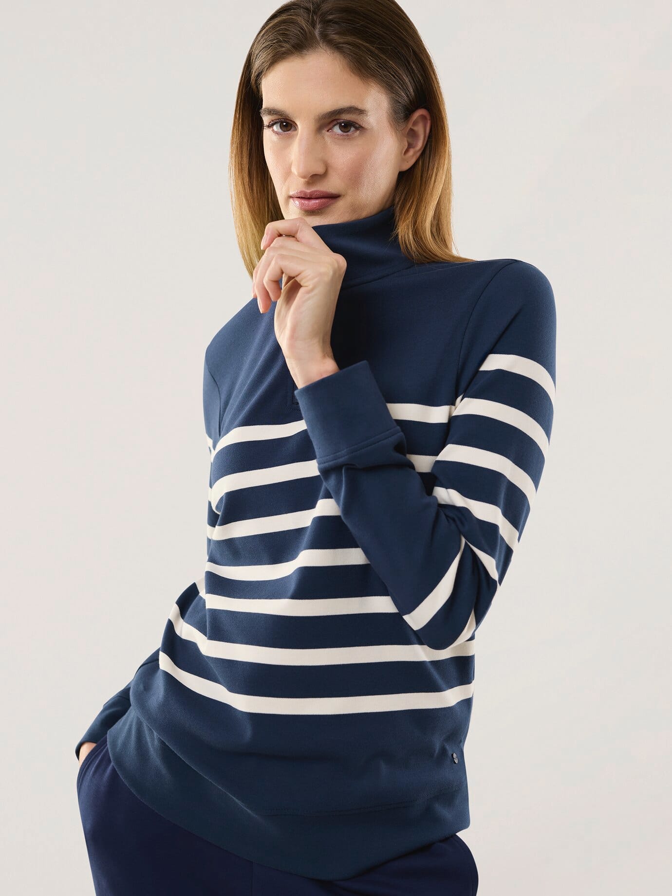 Walbusch Damen Baumwollstretch Seemanns-Pulli Blau gestreift