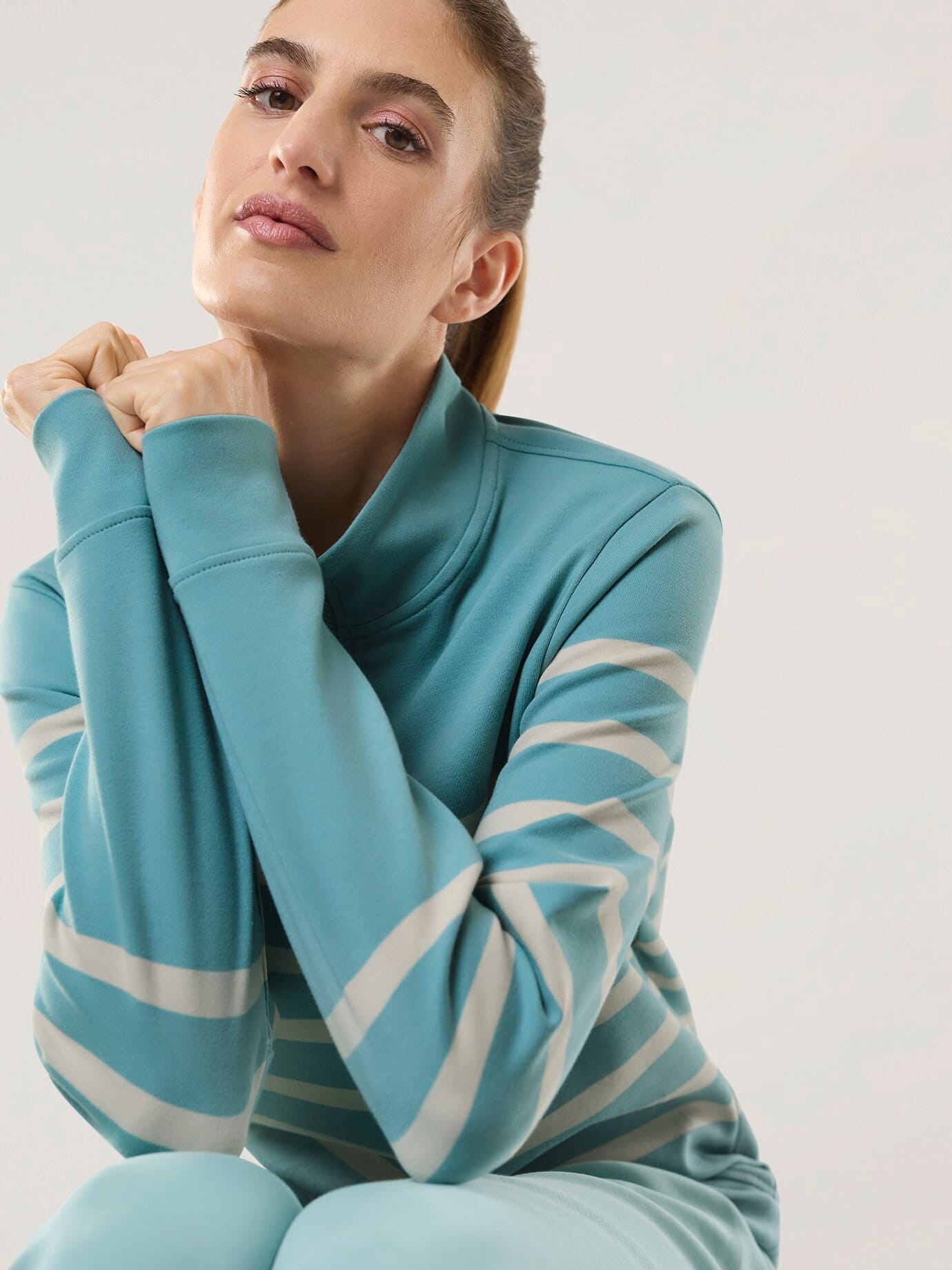 Walbusch Damen Baumwollstretch Seemanns-Pulli Grün gestreift