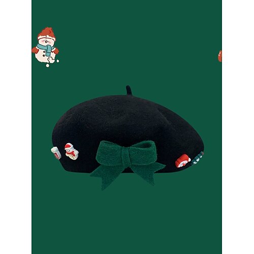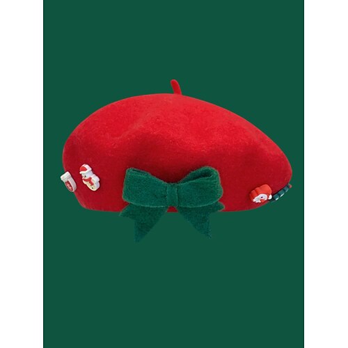 berretto natalizio per bambini, rosso con fiocco verde e Babbo Natale decorazioni a forma di pupazzo di neve, perfette per feste e regali