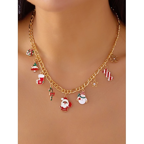 collana con ciondolo natalizio da donna, vari stili con ciondoli a forma di Babbo Natale, pupazzo di neve e albero di Natale, perfetti per feste e regali festivi