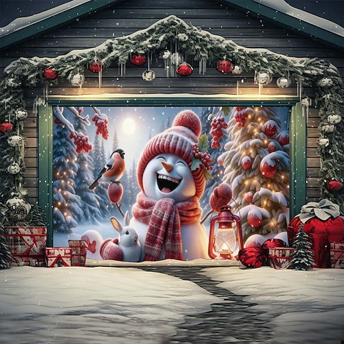 decorazioni natalizie per porte, copertura per porta da garage esterna, pupazzo di neve, striscione natalizio per porta, festa, grande sfondo murale per porta, decorazione per le vacanze, decorazioni