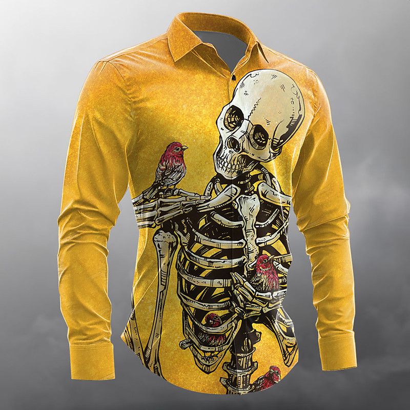 Birds Of A Feather by David Lozeau Men's Bird Skulls Button Up Shirt Long Sleeve Designer Shirt Limited Artist Edition