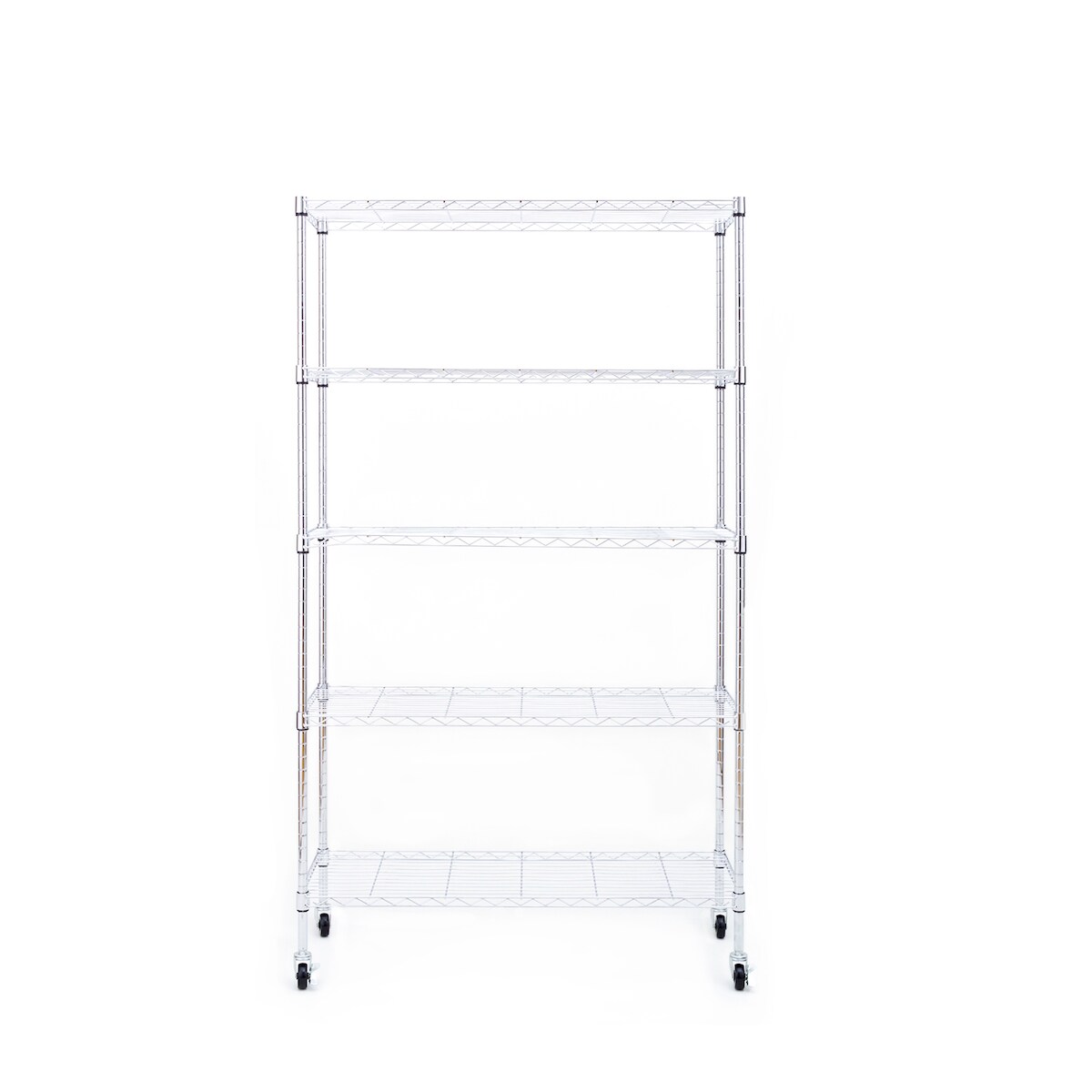 KARAT Gitterregal mit Rollen "Maya" - 5 Böden - 89 x 34 x 150 cm / Verchromt