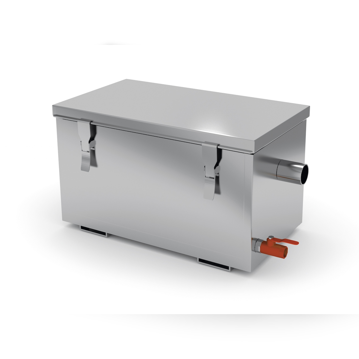 Fettabscheider 30 Liter; Schlammfang 9 Liter, Fettabscheideraum 19 Liter mit Untergestell mit Rollen